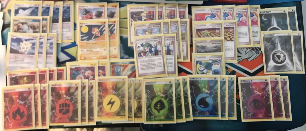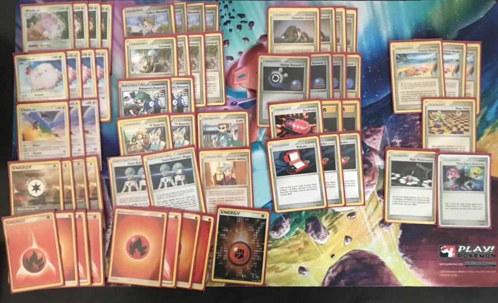 | 4 Blissey 4 Chansey 3 Chatot | 4 Celio’s Network 4 Castaway 2 Roseanne’s Research 2 TV Reporter 2 Team Galactic’s Wager 1 Scott PK 1 Steven’s Advice 4 Cessation Crystal 4 Energy Removal 2 3 PlusPower 3 PokedexHANDY910is 3 Crystal Beach 1 Warp Point 1 Night Maintenance 1 Time-Space Distortion | 4 Holon Energy FF 8 Fire Energy 1 Fighting Energy |