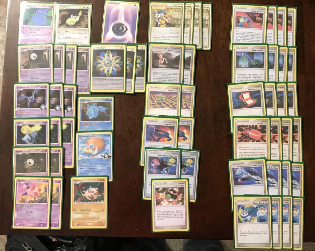 | 1 Shuppet 1 Dunsparce 4 Unown R 3 Uxie 3 Crobat G 2 Mr. Mime 2 Unown Q 1 Regice 1 Mamoswine GL 1 Mankey | 4 Pokémon Collector 2 Buck’s Training 4 Poké Blower + 4 Poké Drawer + 4 Poké Turn 4 PlusPower 4 Pokédex HANDY910is 4 Super Scoop Up 2 Warp Point 2 Time-Space Distortion 2 Expert Belt 1 Luxury Ball | 3 Rainbow Energy 1 Psychic Energy |
