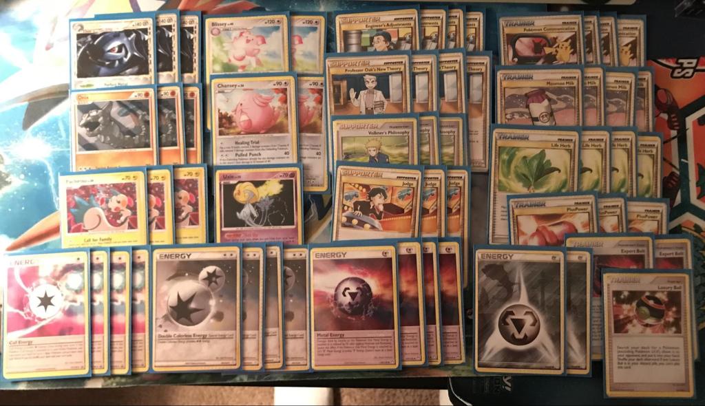 | 3 Steelix 3 Onix 3 Pachirisu 2 Blissey 2 Chansey 1 Uxie | 4 Engineer’s Adjustments 4 Professor Oak’s New Theory 3 Volkner’s Philosophy 3 Judge 4 Pokemon Communication 4 Moomoo Milk 4 Life Herb 3 PlusPower 2 Expert Belt 1 Luxury Ball | 4 Call Energy 4 Double Colorelss Energy 4 Metal Energy (Special) 2 Metal Energy (Basic) |