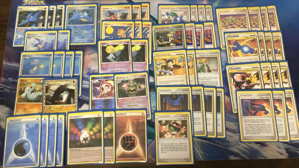 | 3 Kingdra 1 Kingdra 2 Seadra 4 Horsea 3 Claydol 3 Baltoy 1 Dusknoir 1 Duskull 1 Donphan 1 Phanpy | 4 Bebe’s Search 4 Roseanne’s Research 2 Judge 1 Palmer’s Contribution 4 Broken Time-Space 4 Pokemon Communication 4 Rare Candy 4 Warp Point 3 Expert Belt 1 Luxury Ball | 4 Water Energy 2 Multi Energy 1 Fighting Energy |