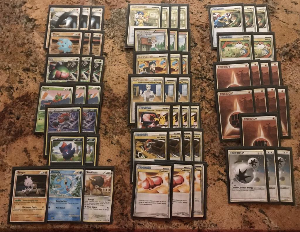 | 3 Donphan 3 Phanpy 3 Yanmega 3 Yanma 2 Zoroark 2 Zorua 1 Tyrogue 1 Manaphy 1 Bouffalant | 4 Pokemon Collector 3 Professor Juniper 3 Judge 3 Professor Oak’s New Theory 4 Pokemon Communication 4 Junk Arm 3 PlusPower 3 Pokemon Reversal 2 Switch | 9 Fighting Energy 3 Double Colorless Energy |