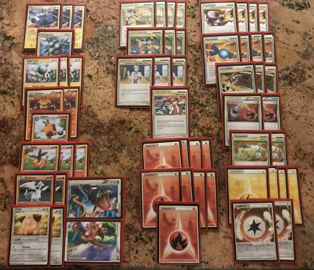 | 3 Magnezone 1 Magneton 3 Magnemite 2 Emboar 1 Pignite 3 Tepig B 2 Reshiram 2 Cleffa 1 Rayquaza & Deoxys LEGEND (top) 1 Rayquaza & Deoxys LEGEND (bottom) | 4 Pokemon Collector 3 Twins 3 Professor Oak’s New Theory 1 Fisherman 4 Pokemon Communication 4 Rare Candy 3 Junk Arm 2 Energy Retrieval 2 Switch | 9 Fire Energy 4 Lightning Energy 2 Rescue Energy |