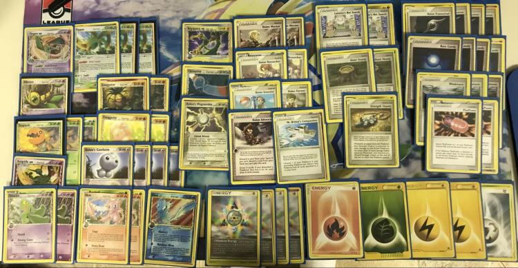 | 3 Flygon 1 Flygon ex 1 Vibrava 3 Trapinch 1 Sceptile ex 2 Treecko 2 Exeggitpr 2 Exeggcite 4 Holon’s Castform 2 Mew POP 5 1 Mew Star 1 Rayquaza ex 1 Chimecho 1 Holon’s Magnemite | 2 Holon Mentor 2 Holon Researcher 1 Holon Scientist 1 Holon Adventurer 1 Mr. Briney’s Compassion 2 Lanette’s Net Search 2 Giant Stump 1 Strength Charm 4 Holon Transceiver 4 Rare Candy 3 Windstorm 2 PlusPower | 4 Delta Species Rainbow Energy 2 Lightning Energy 1 Grass Energy 1 Fire Energy 1 Metal Energy |
