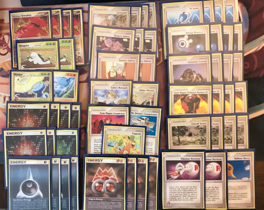 | 4 Team Magma’s Groudon 2 Quagsire 1 Wooper DF 71 1 Wooper UF 79 | 4 Castaway 3 Rocket’s Admin. 2 Steven’s Advice 1 Celio’s Network 1 Holon Mentor 1 Team Magma Conspirator 1 Mr. Briney’s Compassion 1 Copycat 4 VS Seeker 4 Energy Removal 2 4 Cessation Crystal 4 Team Magma Technical Machine 01 4 Cursed Stone 2 Pokemon Retriever 1 Balloon Berry | 6 Fighting Energy 4 Darkness Energy 4 Magma Energy 1 Grass Energy |